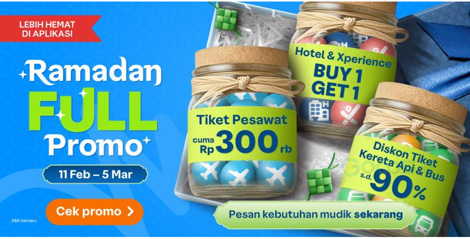 Bersamaan dengan periode ini, Traveloka menyelenggarakan program Ramadan Full Promo yang berlangsung dari 11 Februari hingga 5 Maret. Program tersebut mencakup berbagai penawaran yang dapat dimanfaatkan untuk kebutuhan liburan maupun persiapan mudik, antara lain: