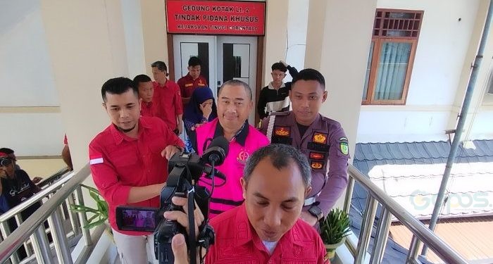 Usai menjalani pemeriksaan kurang lebih sekitar 2 jam lamanya di Kejaksaan Tinggi Gorontalo Hamim keluar dari ruangan pemeriksaan menggunakan baju tahanan kejaksaan.