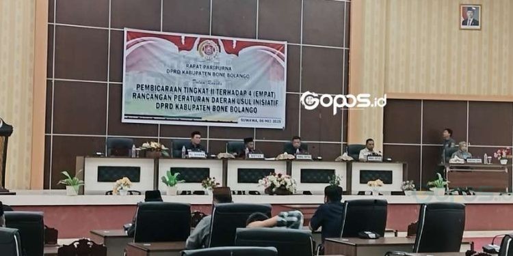 GOPOS.ID, BONE BOLANGO – DPRD Bone Bolango mengesahkan 4 Rancangan Peraturan Daerah (Ranperda) menjadi Perda pada Pembicaraan Tingkat II Terhadap 4 (Empat) Rancangan Peraturan Daerah Usul Inisiatif DPRD Kabupaten Bone Bolango di DPRD Bone Bolango, Selasa (6-5-2025).