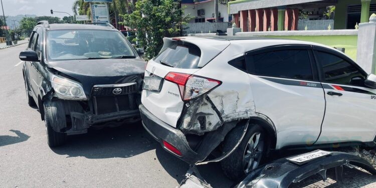 Sebuah minibus Toyota Rush bernomor polisi DM 1248 JA menabrak mobil Honda H-RV dengan nomor polisi DM 1675 BD setelah pengemudi kehilangan fokus saat berkendara.