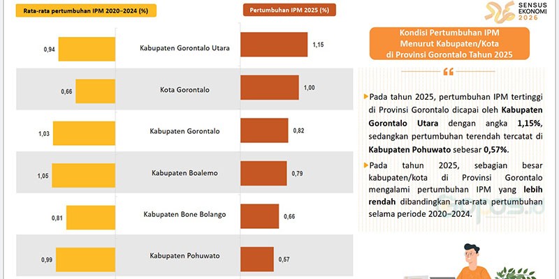 Plt Kepala Badan Pusat Statistik (BPS) Provinsi Gorontalo, Dwi Alwi Astuti, menyampaikan bahwa peningkatan IPM tahun ini didorong oleh perbaikan pada seluruh komponen pembentuk IPM. “Meskipun pertumbuhannya sedikit melambat dibandingkan rata-rata lima tahun terakhir, semua indikator menunjukkan arah yang positif,” ujarnya dalam keterangan resmi, Rabu (5/11/2025).