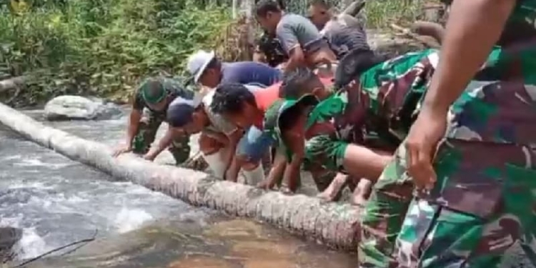 GOPOS.ID, GORONTALO – Kondisi jembatan di dusun III, Desa Pelita Hijau, Kecamatan Bone Pantai, Kabupaten Bone Bolango sudah tidak aman dilalui. Melihat hal itu kodim 1304 Gorontalo membangun abutmen jembatan.