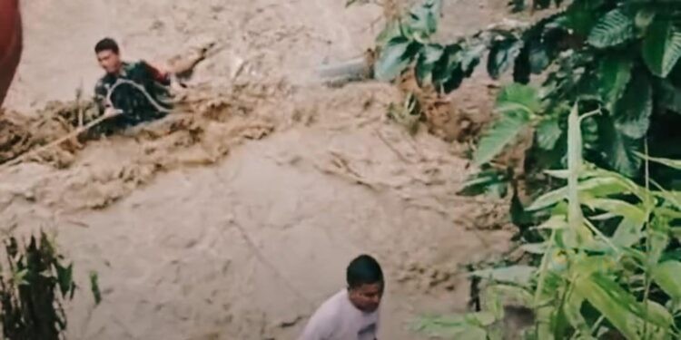 Namun, sekitar pukul 14.00 Wita debit air irigasi tiba-tiba meningkat disertai arus deras akibat hujan di wilayah hulu.