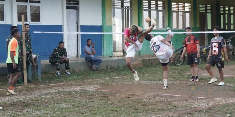 Sorak sorai penonton terdengar riuh di lapangan sementara yang disiapkan di Desa Tonala. Puluhan peserta menunjukkan aksi terbaik mereka, mulai dari tendangan salto hingga smash keras khas olahraga sepak takraw, yang disambut tepuk tangan meriah dari warga.