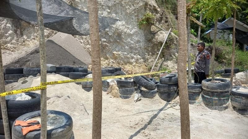 Galian batu kapur di kelurahan Buliide, Kecamatan Kota Barat, Kota Gorontalo dipasangi garis polisi usai insiden longsor yang melukai tiga penambang setempat.(F. Istimewa)