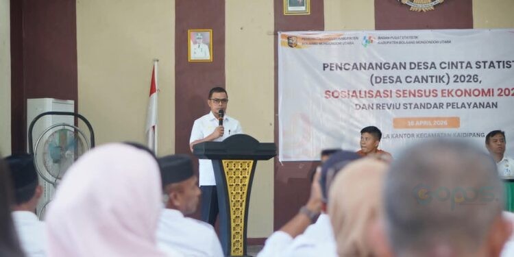 GOPOS.ID – Bupati Bolaang Mongondow Utara (Boltara), Sirajudin Lasena, mencanangkan program Desa Cinta Statistik (Desa Cantik) Tahun 2026, sekaligus membuka secara resmi Sosialisasi Sensus Ekonomi 2026 dan Reviu Standar Pelayanan. Kegiatan tersebut digelar di Aula Kantor Camat Kaidipang, Rabu (15/04/2026).