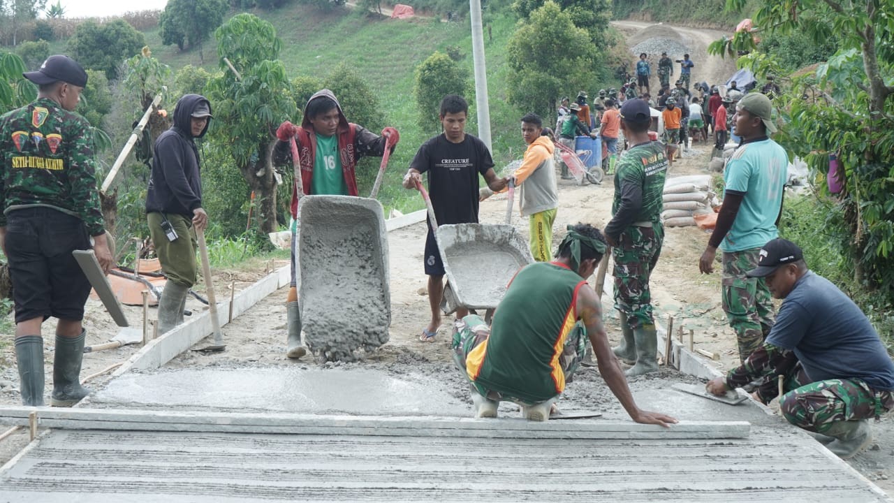 Proyek jalan rabat beton sepanjang 1.143 meter dengan lebar 3 meter ini menjadi salah satu sasaran fisik utama TMMD Ke-126.