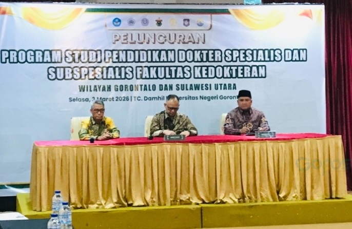 GOPOS.ID, GORONTALO – Universitas Negeri Gorontalo (UNG) resmi meluncurkan Program Studi Pendidikan Dokter Spesialis dan Subspesialis Fakultas Kedokteran untuk wilayah Gorontalo dan Sulawesi Utara, Selasa (3/3/2026), di Ballroom TC Damhil UNG.