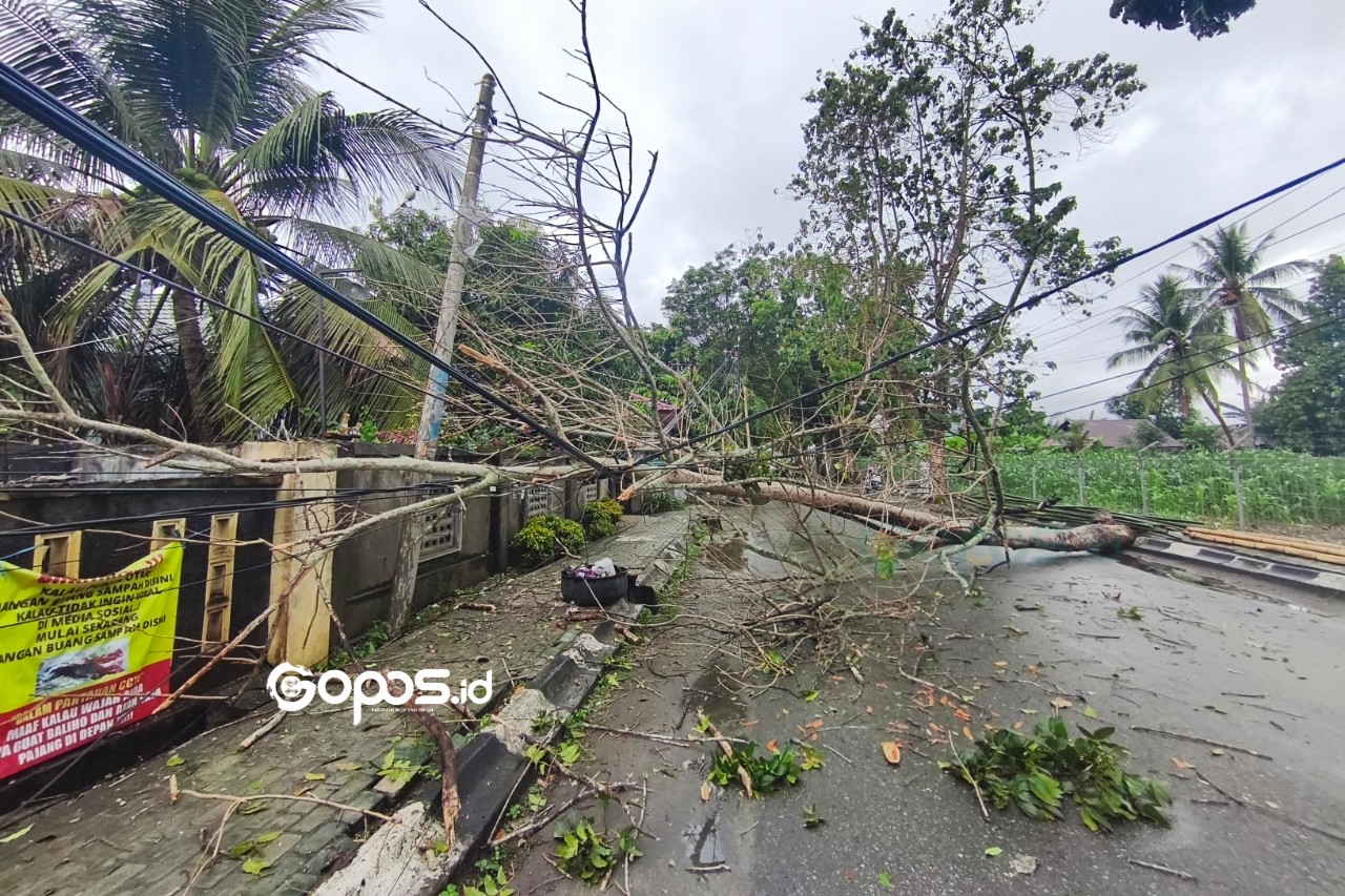 Alhasil satu badan jalan tertutupi pohon dan tak bisa dilewati oleh kendaraan roda dua maupun roda empat.