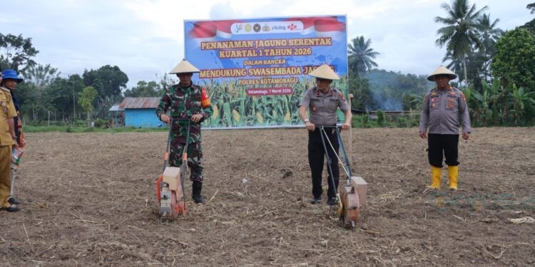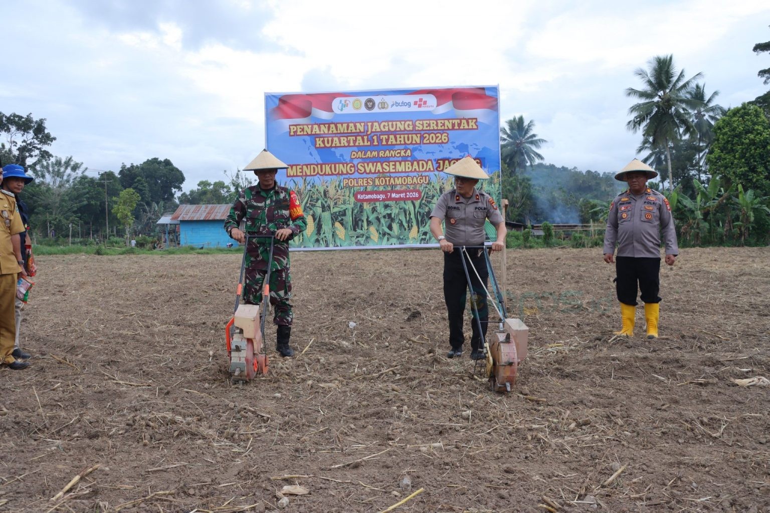 GOPOS.ID, KOTAMOBAGU – Polres Kotamobagu kembali menunjukkan komitmennya dalam mendukung program ketahanan pangan nasional melalui kegiatan Penanaman Jagung Serentak Kuartal I Tahun 2026. Kegiatan tersebut dilaksanakan di lahan milik Polres Kotamobagu yang berada di samping Mako Polsek Lolayan, Desa Mopait, Kecamatan Lolayan, Sabtu (7/3/2026).