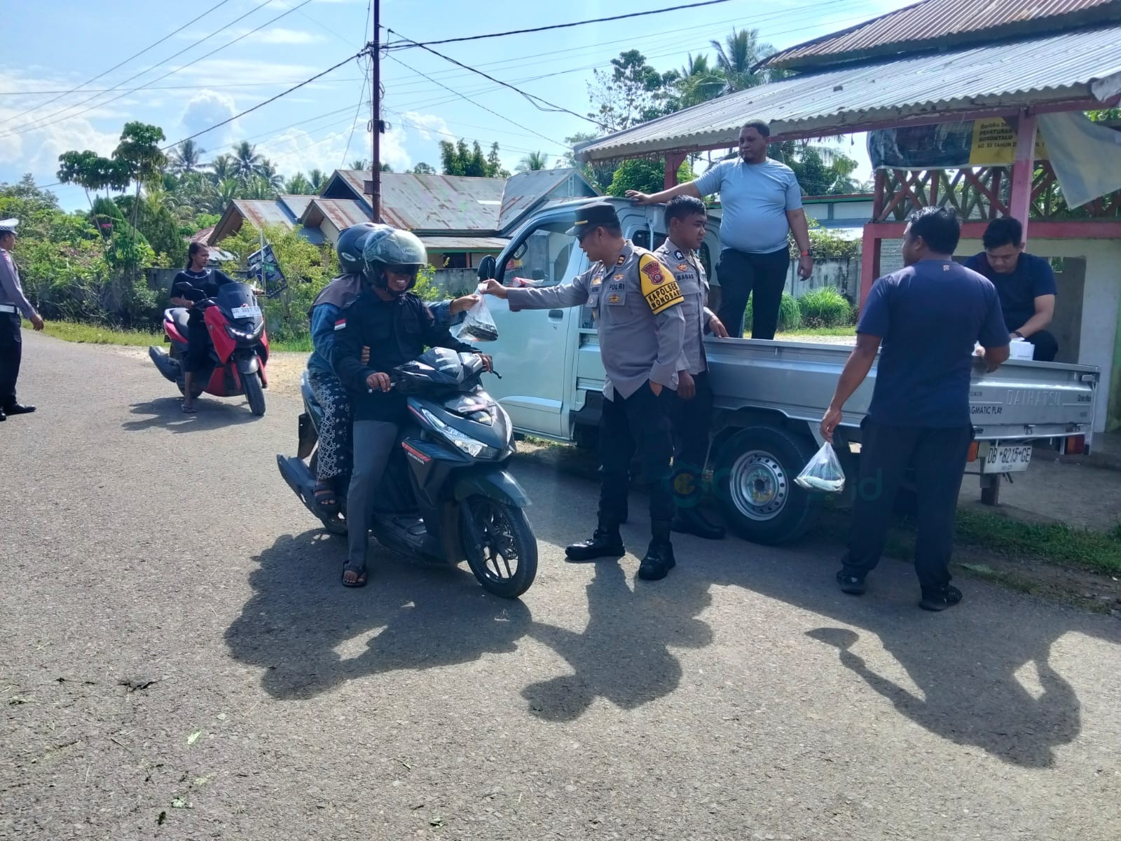 GOPOS.ID, WONOSARI — Kepolisian Sektor (Polsek) Wonosari kembali melaksanakan program sosial Jumat Berkah dengan membagikan ikan laut segar secara gratis kepada masyarakat di Desa Tri Rukun, Kecamatan Wonosari, Kabupaten Boalemo, Jumat (17/4/2026).