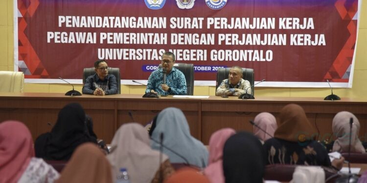 GOPOS.ID, GORONTALO – Sebanyak 265 Aparatur Sipil Negara Pegawai Pemerintah dengan Perjanjian Kerja (ASN PPPK) di lingkungan Universitas Negeri Gorontalo (UNG) resmi menandatangani surat perjanjian kerja. Penandatanganan ini menjadi bagian dari tahapan administrasi pengangkatan PPPK tahap I dan II tahun anggaran 2024.