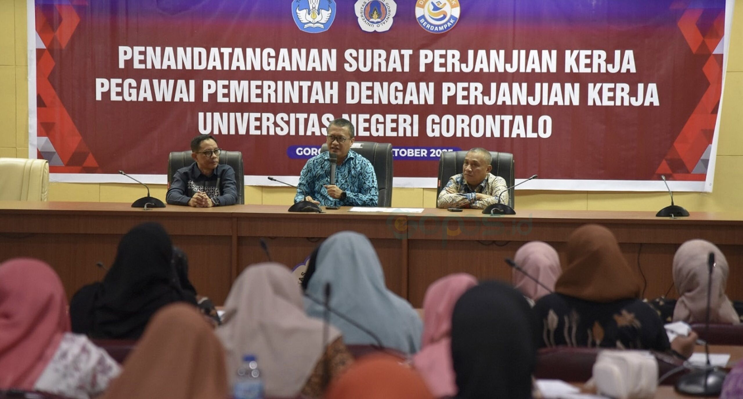 “Kami berharap seluruh PPPK yang hari ini menandatangani perjanjian kerja dapat memegang teguh komitmen, menjaga integritas, serta bekerja sepenuh hati demi kemajuan UNG,” tandas Arief (Rama/Gopos)