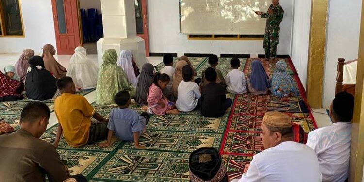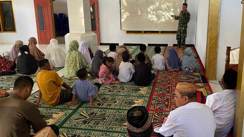Kegiatan tersebut dipandu oleh Serka Laode Kalawara, salah satu anggota Satgas TMMD, yang memberikan pemahaman mendalam tentang pentingnya membaca Al-Qur’an dengan benar.