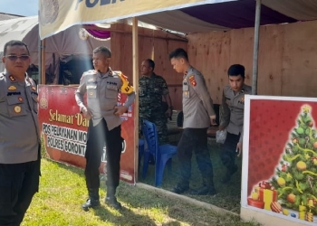 GOPOS.ID, KWANDANG - Kapolres Gorontalo Utara (Gorut), AKBP Juprisan Pratama Ramadhan Nasution mengecek kesiapan pos pengamanan jelang natal dan tahun ...