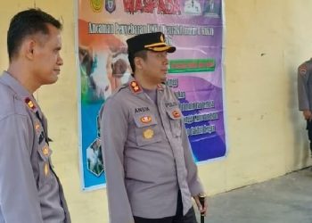 GOPOS.ID, TOLINGGULA - Kapolres Gorontalo Utara (Gorut), AKBP Andik Gunawan mengecek kesiapan pos pengamanan di wilayah batas, Kecamatan Tolinggula menjelang ...