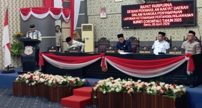 GOPOS.D, GORONTALO – Pertumbuhan ekonomi di Kabupaten Gorontalo sepanjang tahun 2025 meningkat hingga 5,3 persen. Hal ini disampaikan oleh Bupati Gorontalo, Sofyan Puhi dalam rapat Rapat Paripurna Penyampaian Laporan Oertanggung Jawaban (LKPJ) Tahun 2025, senin (06/04/26).