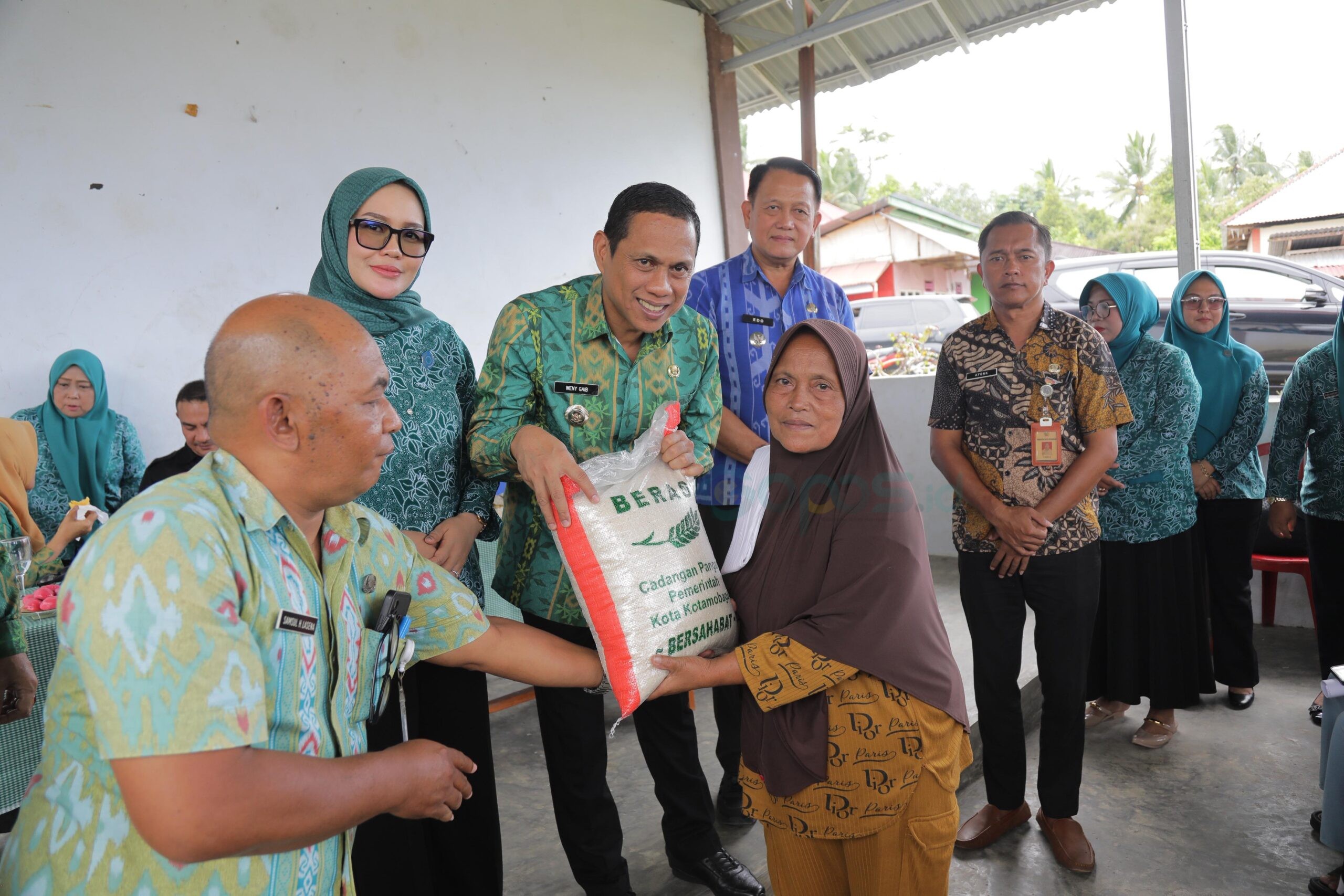 GOPOS.ID, KOTAMOBAGU – Wali Kota Kotamobagu, dr. Wenny Gaib, Sp.M, bersama Ketua TP-PKK Kota Kotamobagu, Ny. Rindah Gaib Mokoginta, S.E., M.Ec.Dev., menyerahkan bantuan bagi Keluarga Penerima Manfaat (KPM) di Kelurahan Upai, Kecamatan Kotamobagu Utara, Kamis (9/10/2025).