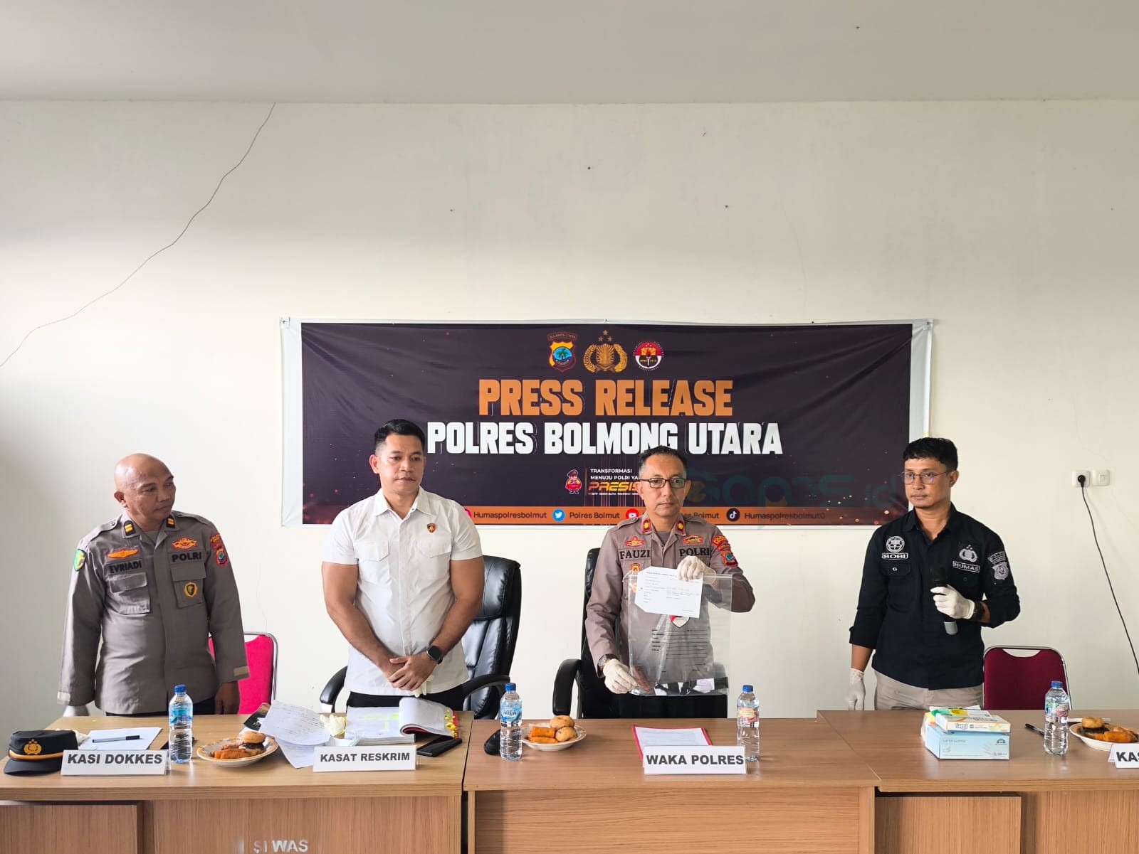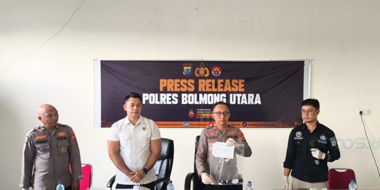 Penetapan tersangka tersebut diumumkan dalam konferensi pers yang digelar pada Kamis, 16 April 2026, oleh jajaran Polres Bolaang Mongondow Utara yang dipimpin Wakapolres, Abdul Rahman Faudji.