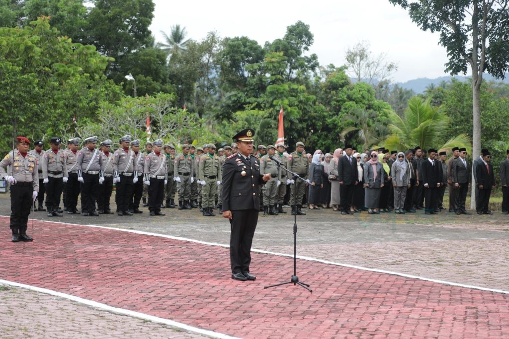 Kegiatan yang dipimpin Kapolres Kotamobagu, AKBP Irwanto, S.I.K., M.H., berlangsung khidmat dengan prosesi tabur bunga di makam para pahlawan sebagai bentuk penghormatan dan penghargaan atas jasa mereka dalam memperjuangkan kemerdekaan.