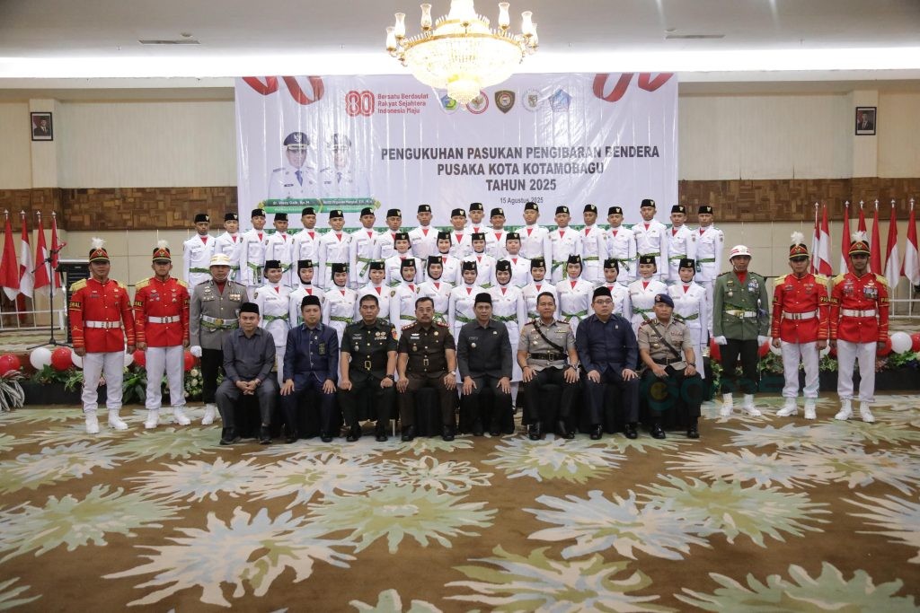Dengan pengukuhan ini, para anggota Paskibraka resmi mengemban amanah sebagai pengibar duplikat Sang Saka Merah Putih pada Upacara Peringatan HUT ke-80 Kemerdekaan RI di Kota Kotamobagu. (ADVE)